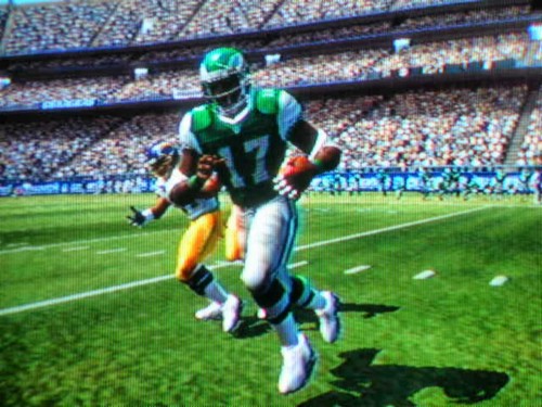 Wide Receiver Harold Carmichael caught 48 passes for 815 yards and 9 touchdowns in 1980. Here, he gains some yardage after the catch against the Chargers.